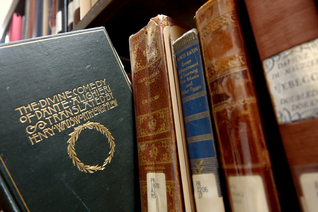 This special collection includes The Divine Comedy of Dante translated by Henry Wadsworth Longfellow, a copy of To Kill a Mockingbird from its original publishing cycle and Slave Narratives from Sampson County. Several of these books were donated to the College by local families.