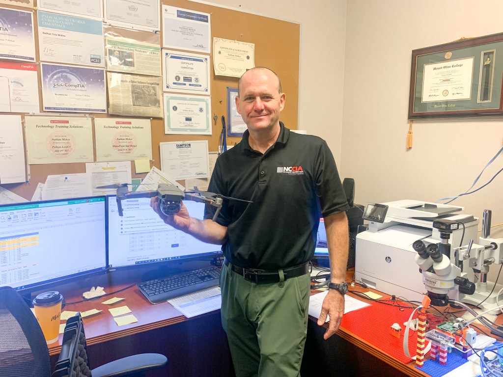 McKee says that small-town feel will remain either way. The department plans to hold weekly lab hours and hold office and tutoring hours virtually. Still, the department has access to state-of-the-art technology that students will want to make use of when possible. Technology like a custom-made Lenovo server designed to crack passwords, a custom-made robot, a search and rescue drone, and other high-quality technology.