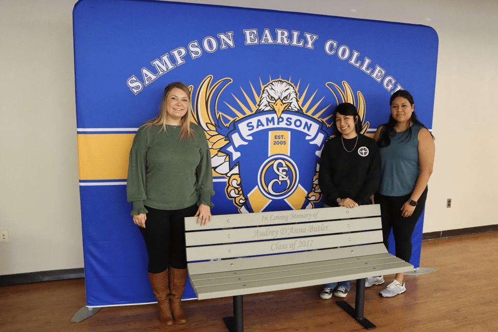 [Clinton, N.C.] – On Wednesday, January 18, Sampson Community College (SCC) held a dedication ceremony for a campus bench gifted by members of the Sampson Early College High School (SECHS) Class of 2017 in loving memory of their beloved classmate, Audrey D’Anna Butler who passed away in November of 2022.