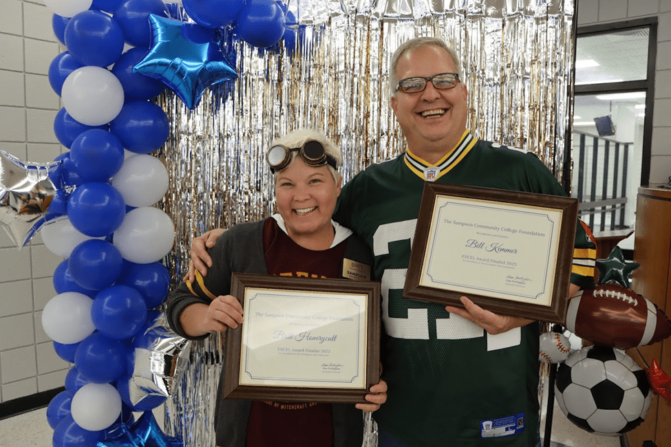Receiving high praise from their coworkers, this year’s EXCEL award winners were: Britt Honeycutt, Department Chair of English & Communications and QEP Co-Chair, representing faculty; and Bill Kemmer, Computer Support Administrator, representing staff.